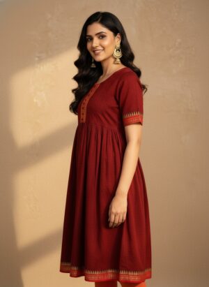 Mangalagiri Cotton Anarkali- Maroon