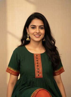 Mangalagiri Cotton Anarkali- Green