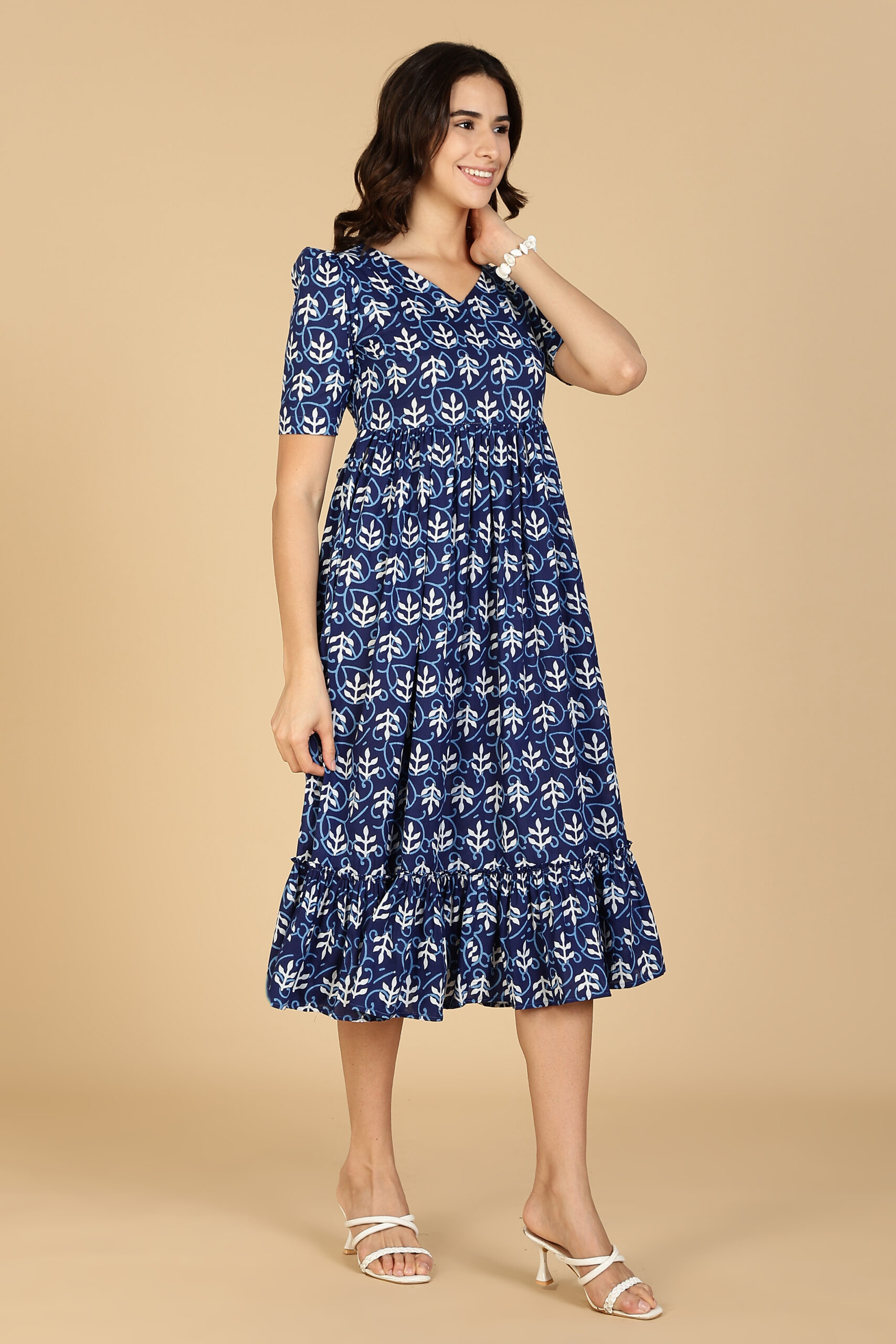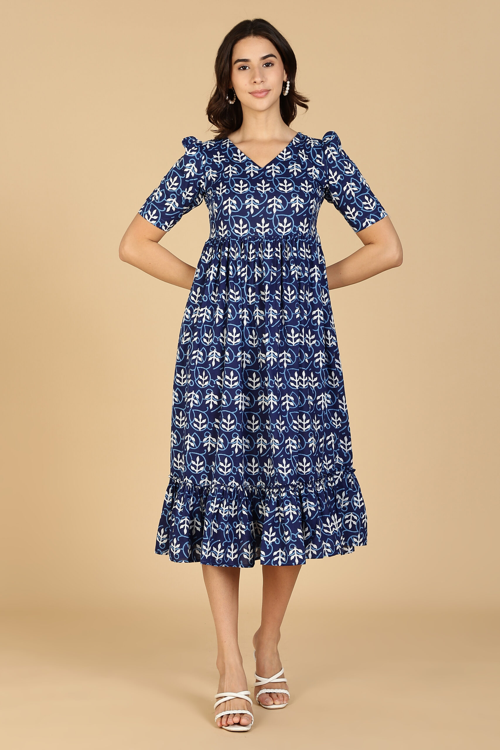Blue & White Floral Gown, casual Wear perfect for all Occasions with attractive Small V neck design