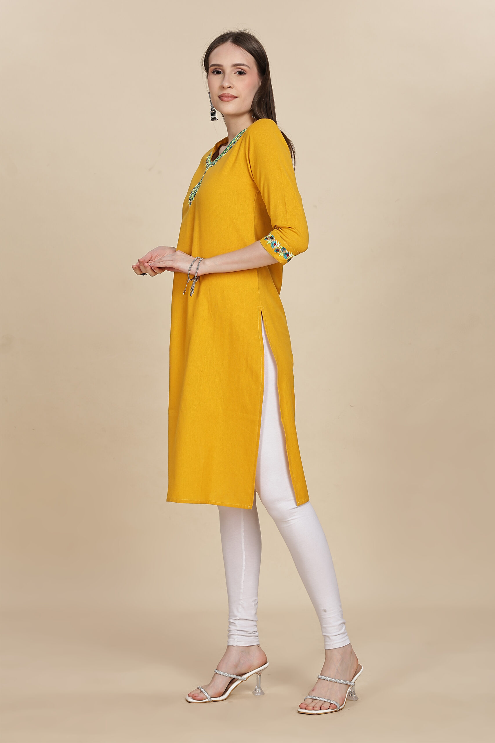 Floral Yellow Embroidery Design Kurti