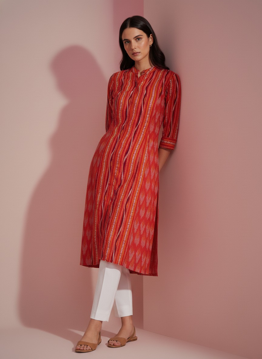 Ikat Red Kurti