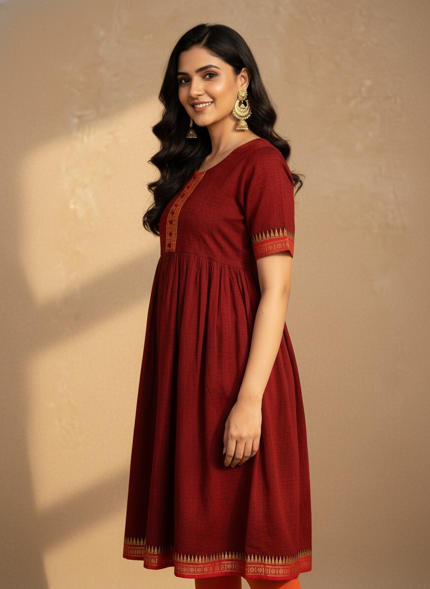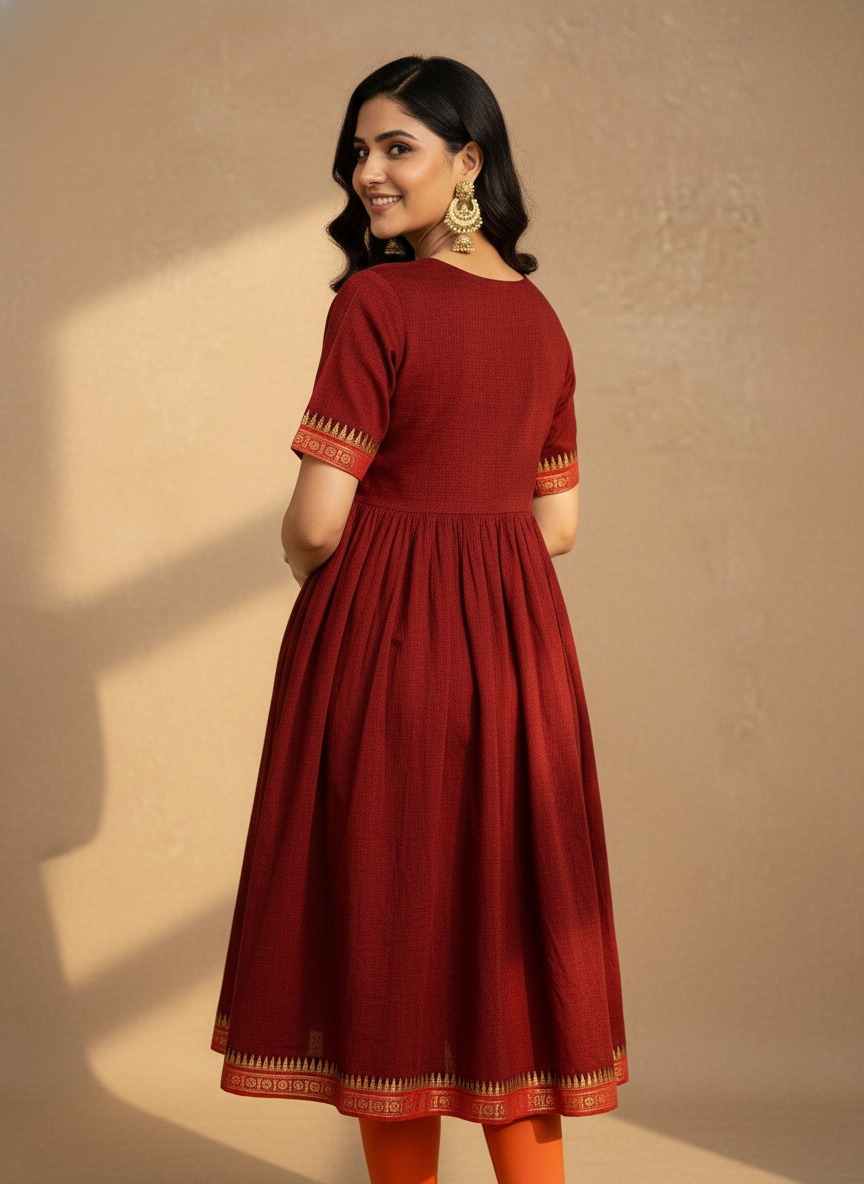 Be the first to review “Mangalagiri Cotton Anarkali- Maroon”