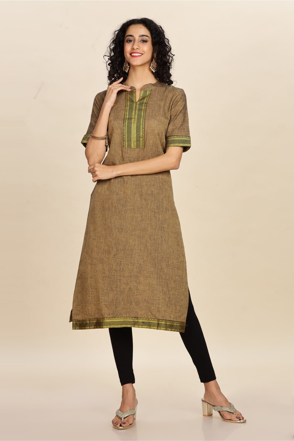 A stylish and elegant Kurti, perfect for casual or semi-formal occasions, crafted from premium-quality Cotton fabric with a fabric-washed finish. Designed with no darts for a relaxed fit, it is gentle wash recommended.